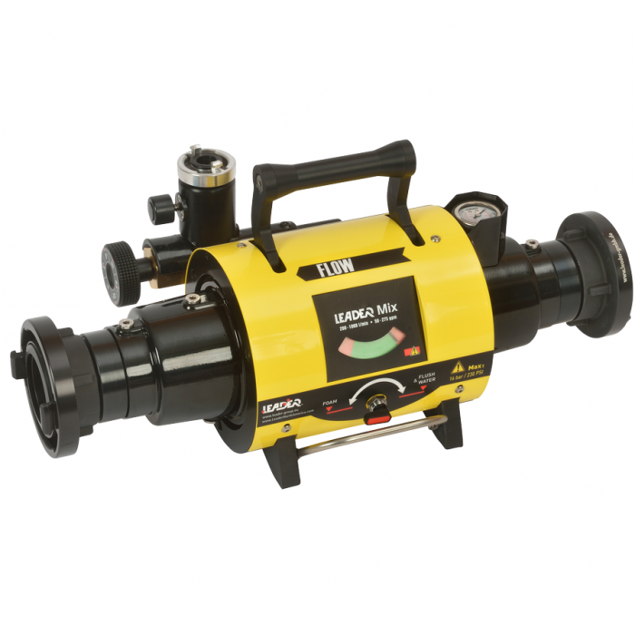 Индуктор пены LeaderMIX работает от 5 бар. Он адаптируется к изменениям расхода и не создает большего перепада давления, чем обычная трубка Вентури.