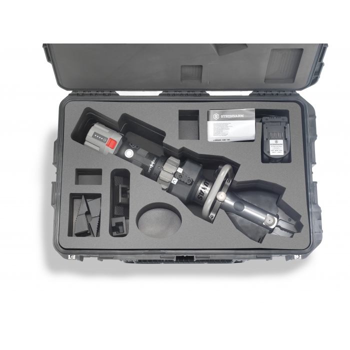 LE 100 StrongArm від LUKAS - надійний помічник для поліції та спецпідрозділів. Багатофункціональний пристрій усуває всі перешкоди та економить час, коли це необхідно. Він зрізає замки, засуви, ланцюги чи троси, відсуває перешкоди, такі як решітки, і зламує замки. За допомогою наконечників для відкривання дверей можна швидко відкрити замкнені ворота, двері та вікна будівель, квартир і подолати перешкоди. StrongArm також відкриває двері, багажники та капоти автомобіля. Пристрій живиться від потужної акумуляторної батареї та забезпечує повну продуктивність в екстремальних умовах навколишнього середовища.