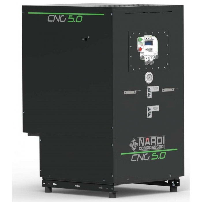 Линия CNG - это линейка компрессоров NARDI, предназначенных для сжатия метана и биметана. Эти модели предназначены для всасывания газа низкого давления непосредственно из бытовых или промышленных трубопроводов и последующего сжатия его до 336 бар в условиях полной безопасности. Все CNG сертифицированы по ATEX ZONE II и поставляются в комплекте с пультом управления NARDI COMPRESSOR, что делает их удобными в эксплуатации благодаря возможности постоянного контроля состояния оборудования, параметров, автоматических предупреждений в случае технического обслуживания и управления любыми аварийными сигналами и аномалиями. Модель CNG 5.0 имеет производительность 18 м³/ч, поставляется с рамой М и предназначена для установки вне помещений, имеет специально разработанные боковые двери, обеспечивающие легкий и непосредственный доступ к насосному агрегату. Этот компрессор является моделью промежуточного размера и подходит как для прямой заправки автомобилей, так и для применения в промышленных системах хранения газа.