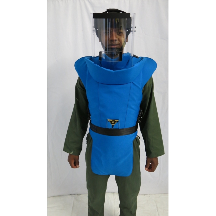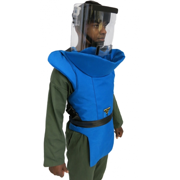 - Двойной защитный воротник разработан для интегрирования со шлемом для разминирования. перекрытие участков шеи.